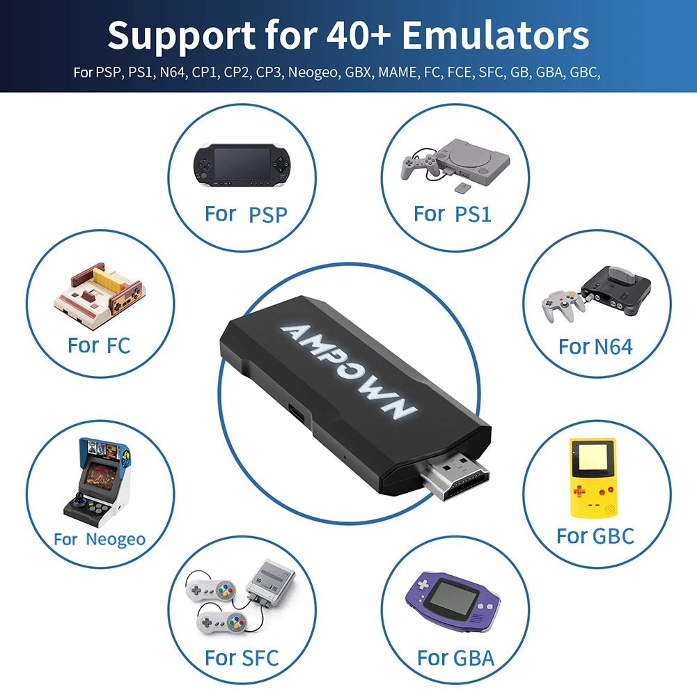 Suporta 10 emuladores: MAME(Fliperamas e Arcades), PS1, PSP, NES, SNES, N64, GB, GBC, GBA, Genesis MD, Atari.