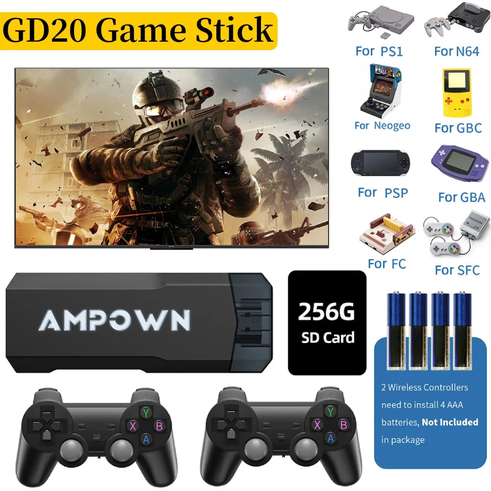 A Loja Jogos Antigos e Nerdices orgulhosamente apresenta O Nosso Novo Vídeo Game Retrô 4K com mais de 40 mil jogos já instalados na memória de todas as plataformas que marcaram a sua infância como Super Mario World, Mortal kombat, Sonic, Tekken 3, God of War, GTA, Resident Evil, Mario 64, Driver e muitos outros milhares de jogos em um único console. E de brinde acompanha 2 controles sem fio e cartão SD com espaço para você acrescentar mais jogos. E o melhor, você não precisa instala-lo na sua TV ou Computador e nem configurar nada, basta pluga-lo ao seu aparelho e pronto, é só jogar e se divertir.