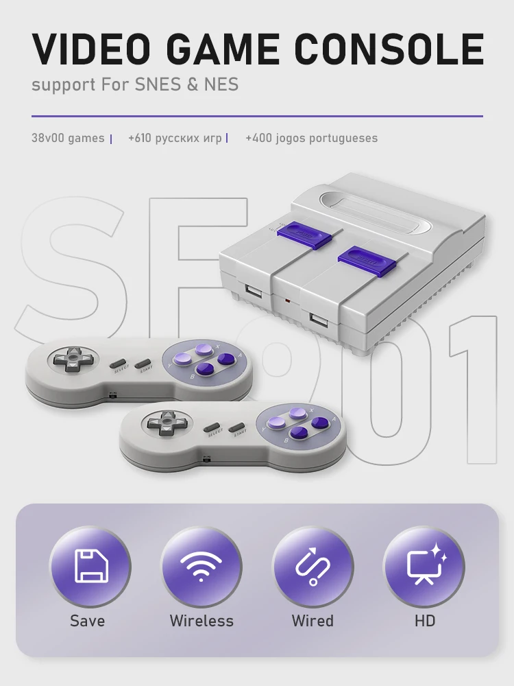 A Loja Jogos Antigos e Nerdices te apresenta agora a fusão entre os melhores jogos desenvolvidos pela Nintendo com a melhor tecnologia de jogabilidade. Apresentamos especialmente pra você o nosso super Nintendo Retrô HD com dois controles sem fio e mais de 4800 Jogos de Super Nintendo e Nintendo 8 Bits já instalados.